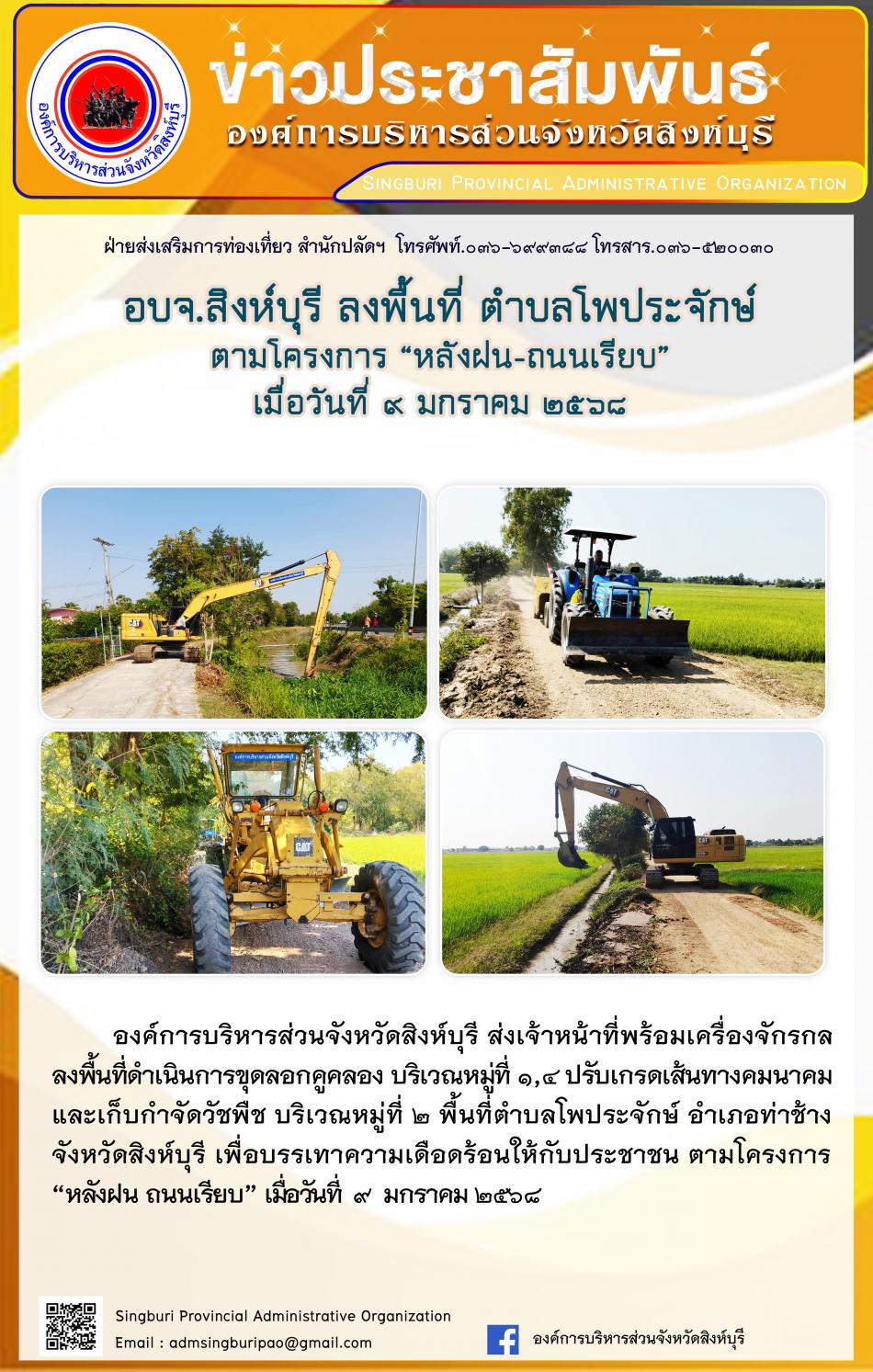 อบจ.สิงห์บุรี ลงพื้นที่ ตำบลโพประจักษ์ ตามโครงการ "หลังฝน - ถนนเรียบ" [9 มกราคม 2568]