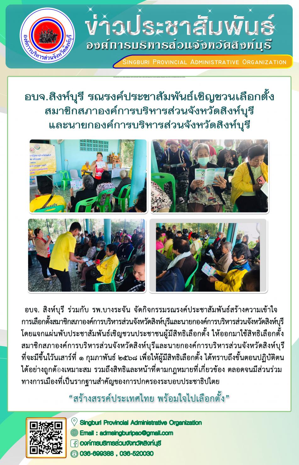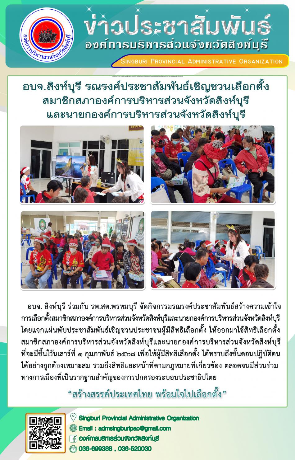 อบจ.สิงห์บุรี รณรงค์ประชาสัมพันธ์เชิญชวนเลือกตั้งสมาชิกสภาองค์การบริหารส่วนจังหวัดสิงห์บุรีและนายกองค์การบริหารส่วนจังหวัดสิงห์บุรี [29 ธันวาคม 2567]