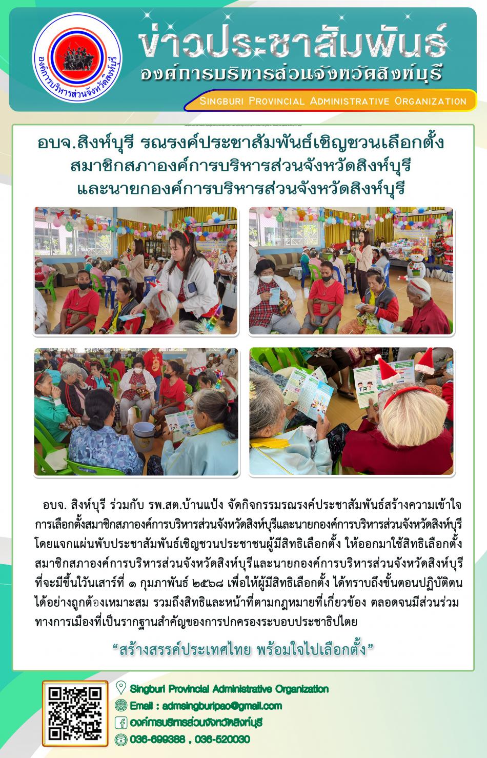 อบจ.สิงห์บุรี รณรงค์ประชาสัมพันธ์เชิญชวนเลือกตั้งสมาชิกสภาองค์การบริหารส่วนจังหวัดสิงห์บุรีและนายกองค์การบริหารส่วนจังหวัดสิงห์บุรี [28 ธันวาคม 2567]