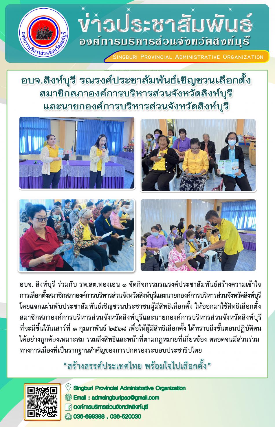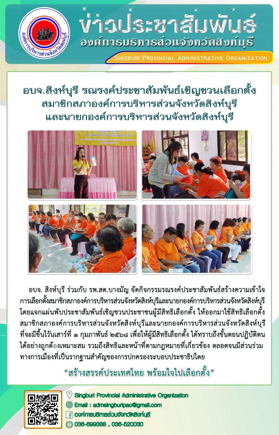 อบจ.สิงห์บุรี รณรงค์ประชาสัมพันธ์เชิญชวนเลือกตั้งสมาชิกสภาองค์การบริหารส่วนจังหวัดสิงห์บุรีและนายกองค์การบริหารส่วนจังหวัดสิงห์บุรี [24 ธันวาคม 2567]