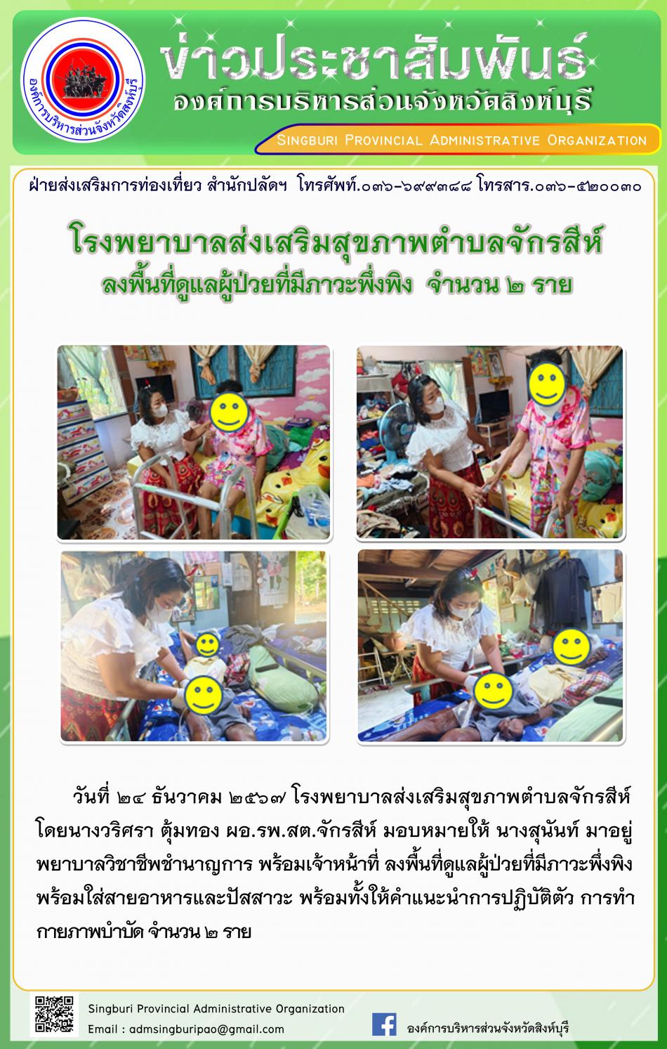 โรงพยาบาลส่งเสริมสุขภาพตำบลจักรสีห์ ลงพื้นที่ดูแลผู้ป่วยที่มีภาวะพึ่งพิง จำนวน 2 ราย [24 ธันวาคม 2567]