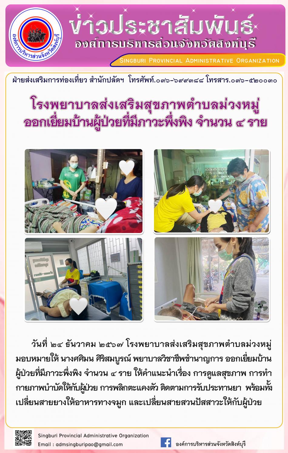 โรงพยาบาลส่งเสริมสุขภาพตำบลม่วงหมู่ ออกเยี่ยมบ้านผู้ป่วยที่มีภาวะพึ่งพิง จำนวน 4 ราย [24 ธันวาคม 2567]