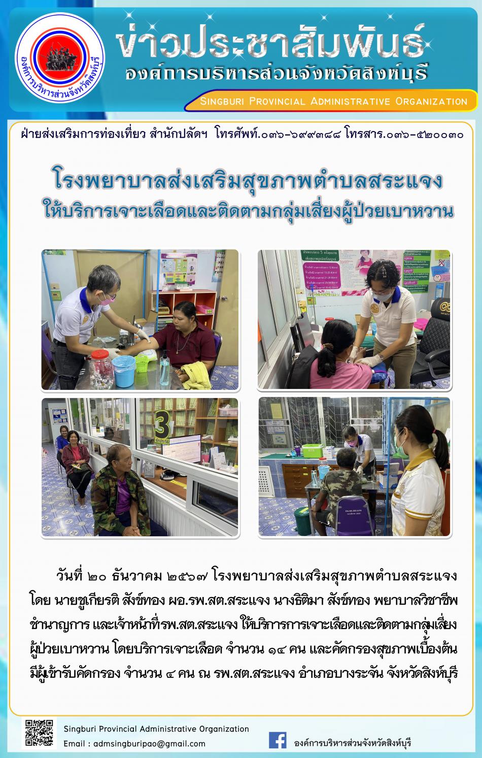 โรงพยาบาลส่งเสริมสุขภาพตำบลสระแจงให้บริการเจาะเลือดและติดตามกลุ่มเสี่ยงผู้ป่วยเบาหวาน [20 ธันวาคม 2567]