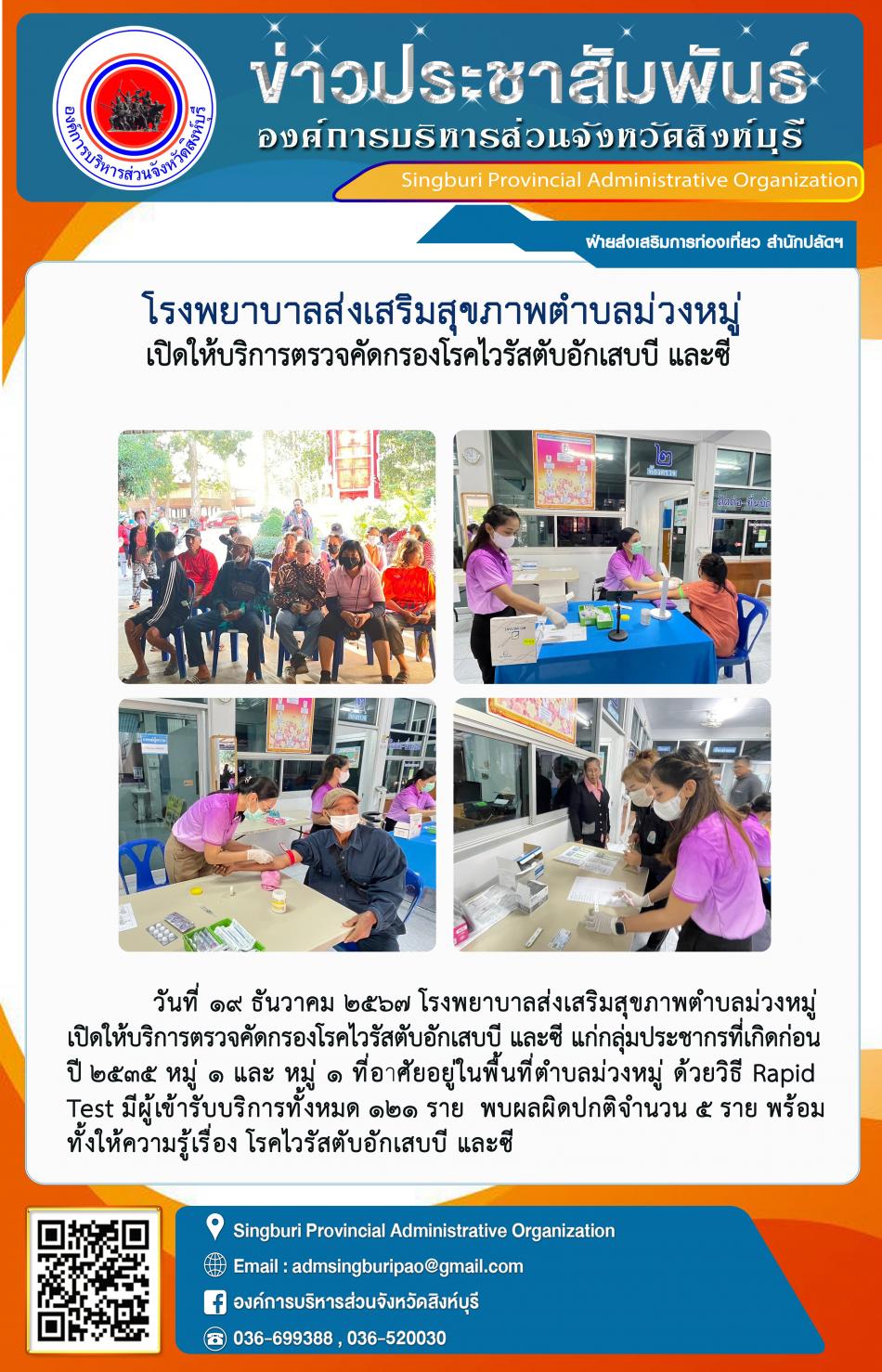 โรงพยาบาลส่งเสริมสุขภาพตำบลม่วงหมู่ เปิดให้บริการตรวจคัดกรองโรคไวรัสตับอักเสบบี และซี [19 ธันวาคม 2567]