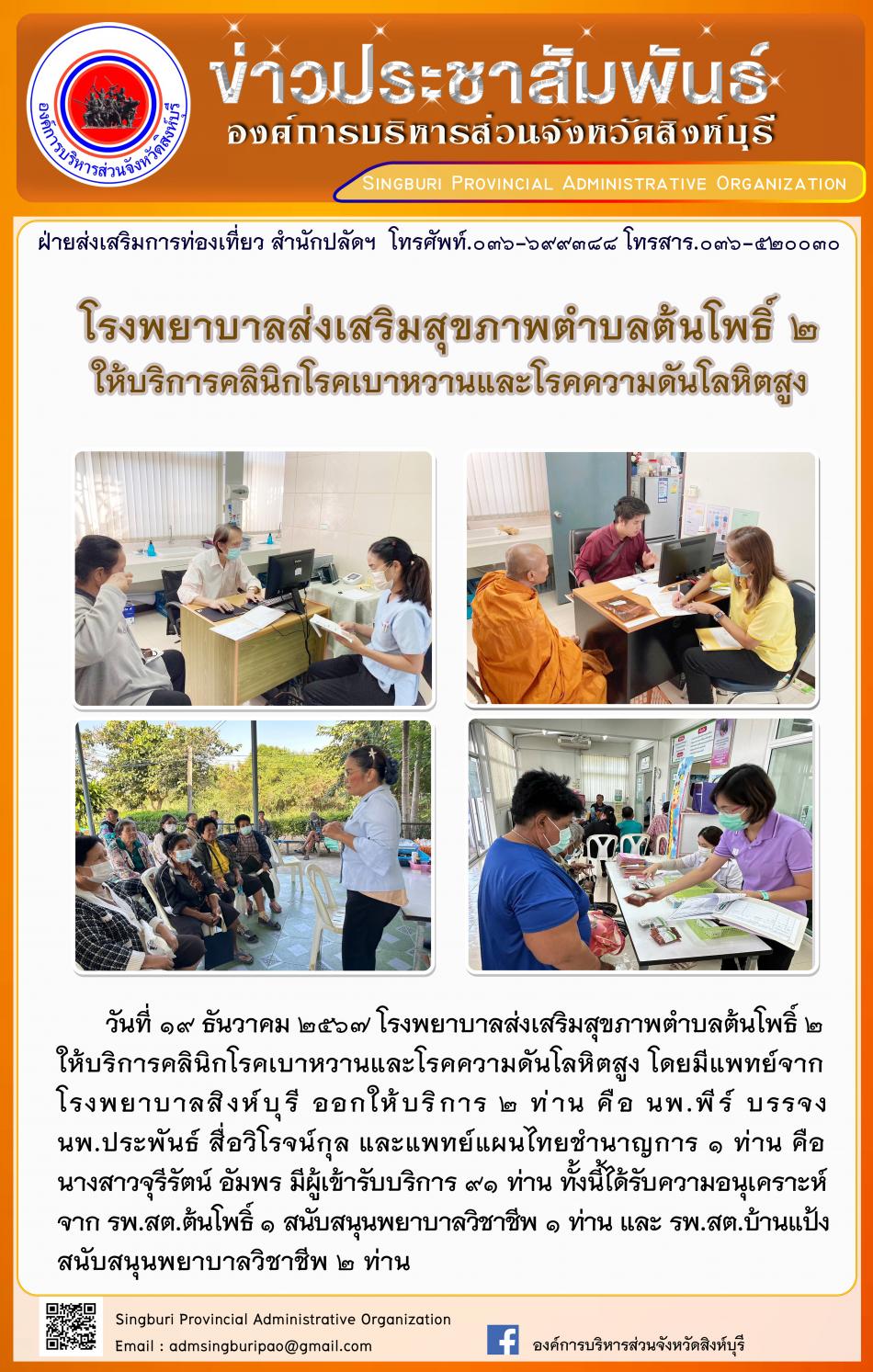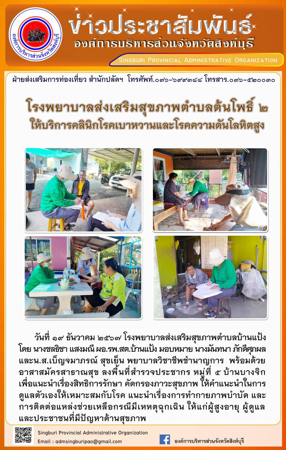 โรงพยาบาลส่งเสริมสุขภาพตำบลต้นโพธิ์ 2 ให้บริการคลินิกโรคเบาหวานและโรคความดันโลหิตสูง [19 ธันวาคม 2567]