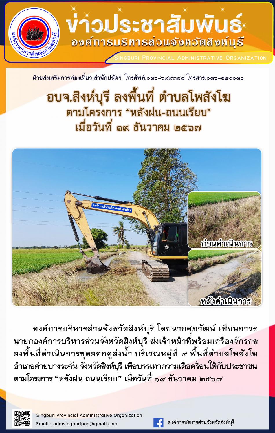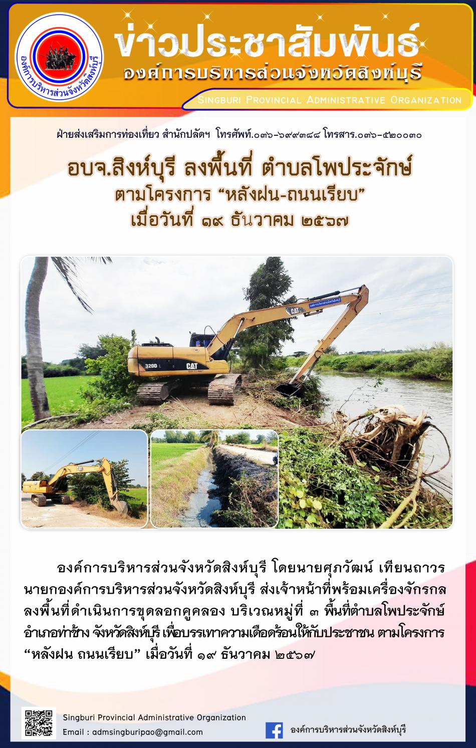 อบจ.สิงห์บุรี ลงพื้นที่ ตำบลโพสังโฆ ตามโครงการ "หลังฝน - ถนนเรียบ" [19 ธันวาคม 2567]