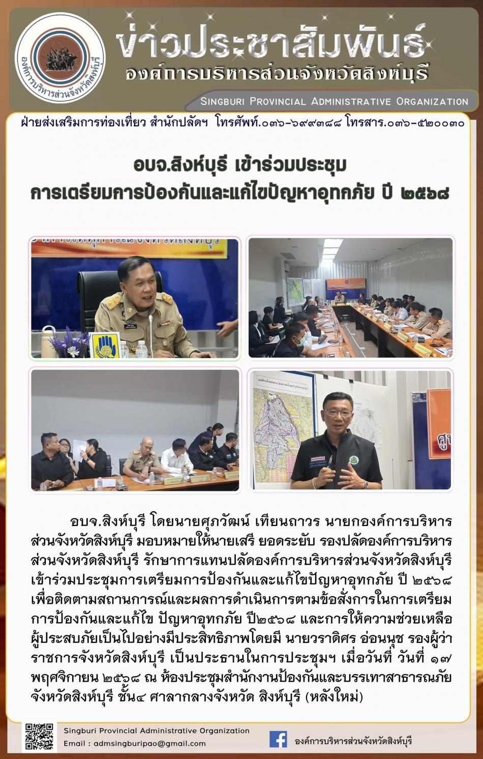 อบจ.สิงห์บุรี เข้าร่วมประชุมการเตรียมการป้องกินและแก้ไขปัญหาอุทกภัยปี 2568 [17 พฤศจิกายน 2568]