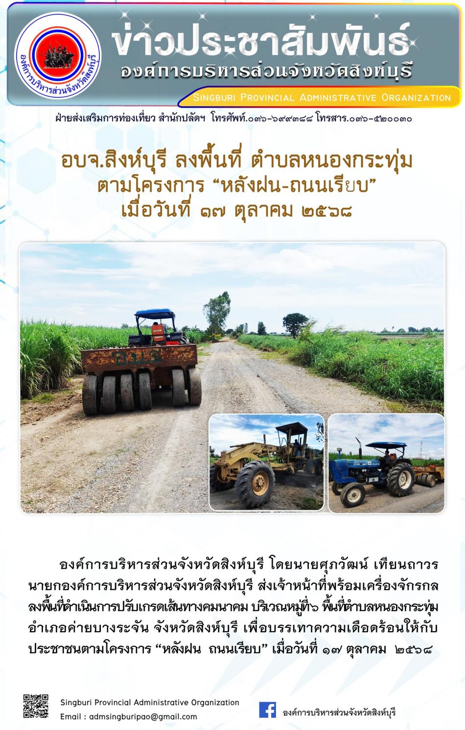 อบจ.สิงห์บุรี ลงพื้นที่ ตำบลหนองกระทุ่ม ตามโครงการ “ หลัง ฝน- ถนนเรียบ” [17 ตุลาคม 2568]