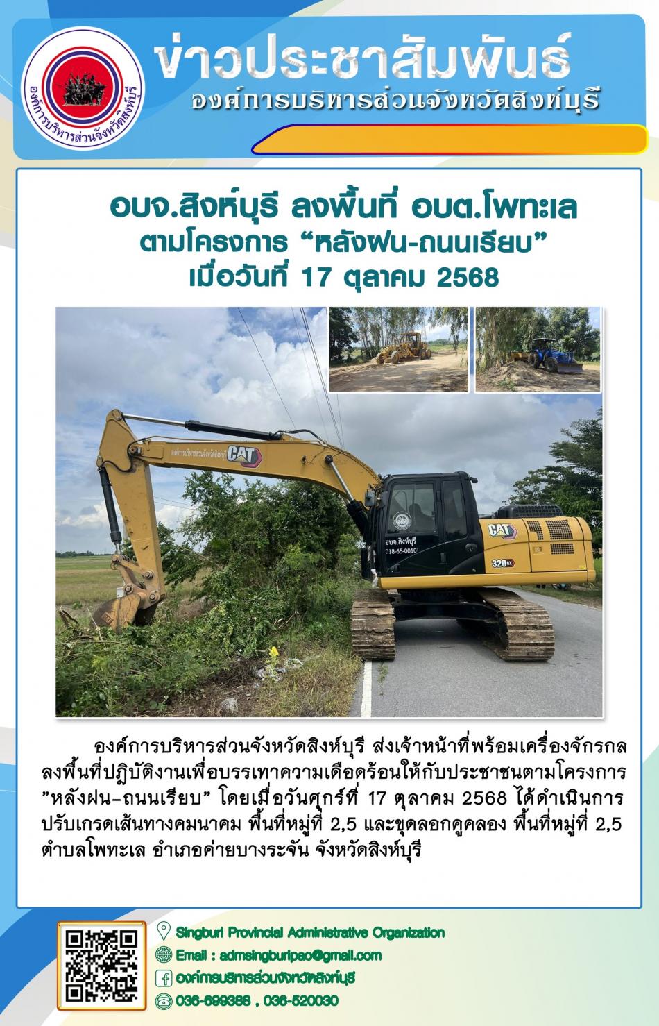 อบจ.สิงห์บุรี ลงพื้นที่ อบต.โพทะเล ตามโครงการ “ หลัง ฝน- ถนนเรียบ” [17 ตุลาคม 2568]
