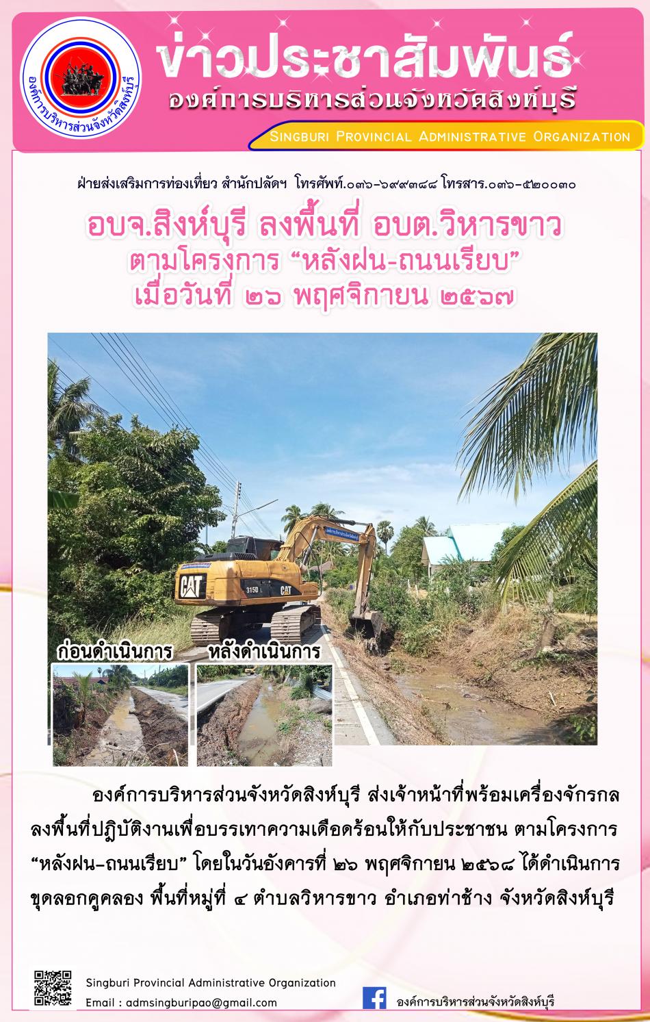 อบจ.สิงห์บุรี ลงพื้นที่ อบต.วิหารขาว ตามโครงการ "หลังฝน - ถนนเรียบ" [26 พฤศจิกายน 2567]