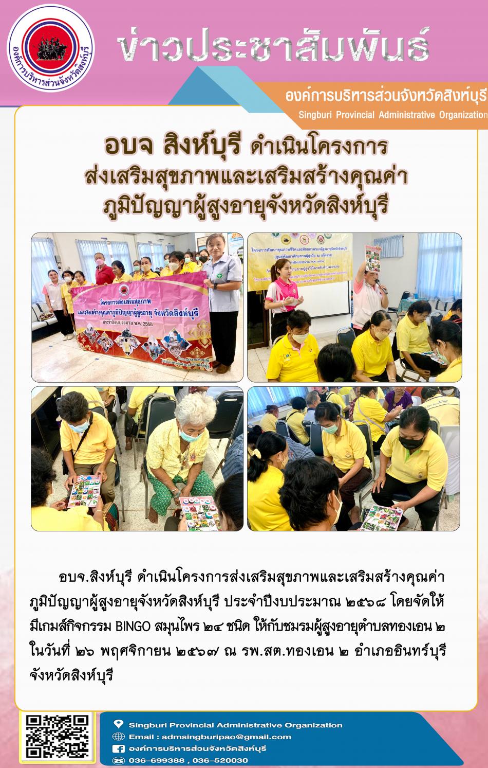 อบจ.สิงห์บุรี ดำเนินโครงการส่งเสริมสร้างคุณค่าภูมิปัญญาผู้สูงอายุจังหวัดสิงห์บุรี [26 พฤศจิกายน 2567]
