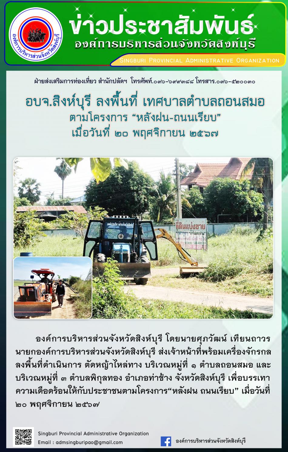 อบจ.สิงห์บุรี ลงพื้นที่ เทศบาลตำบลถอนสมอ ตามโครงการ "หลังฝน - ถนนเรียบ" [20 พฤศจิกายน 2567]