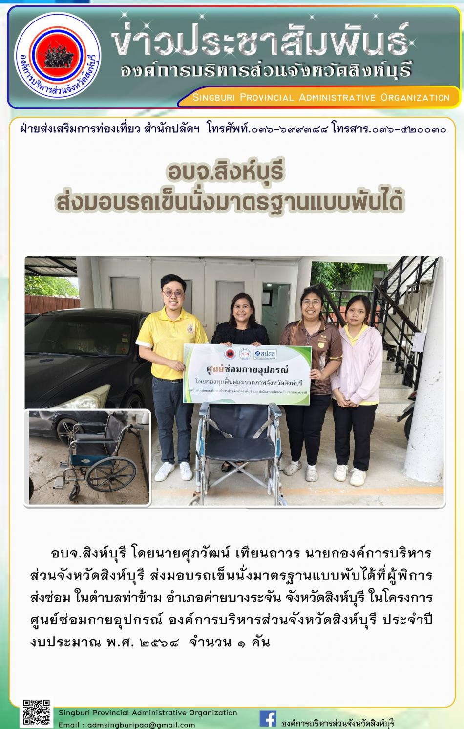อบจ.สิงห์บุรี ส่งมอบรถเข็นนั่งมาตรฐานแบบพับได้ [15 ตุลาคม 2568]