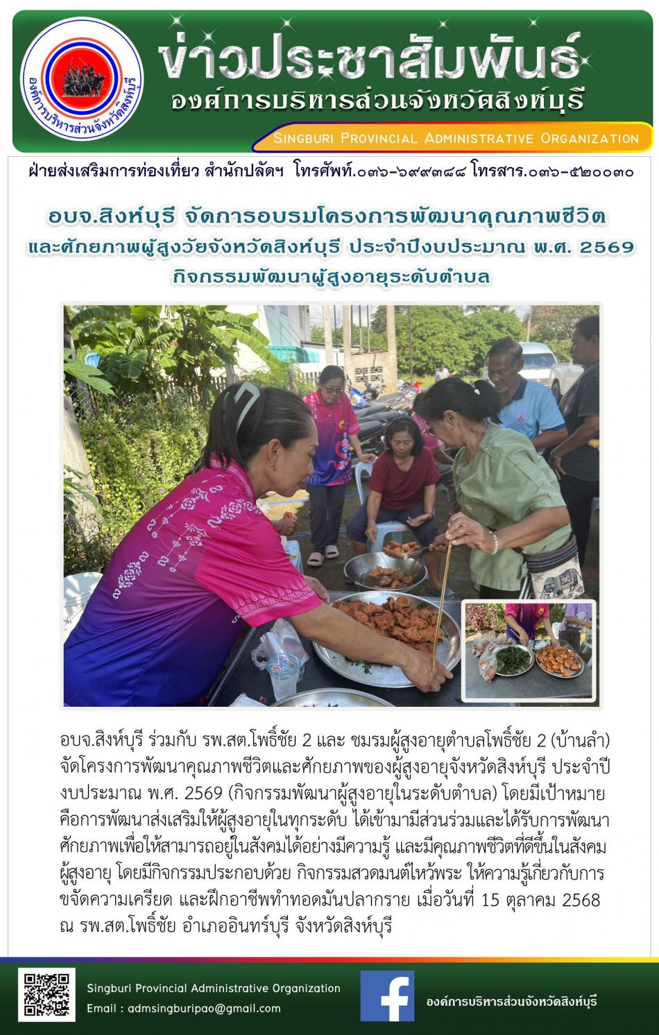 อบจ.สิงห์บุรี จัดโครงการพัฒนาคุณภาพชีวิตและศักยภาพของผู้สูงอายุ จังหวัดสิงห์บุรี ประจำปีงบประมาณ พ.ศ. 2569 กิจกรรมพัฒนาผู้สูงอายุระดับตำบล [16 ตุลาคม 2568]