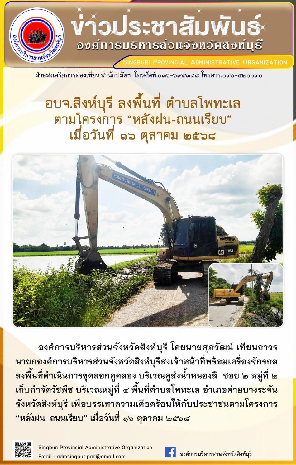 อบจ.สิงห์บุรี ลงพื้นที่ ตำบลโพทะเล ตามโครงการ “ หลัง ฝน- ถนนเรียบ” [16 ตุลาคม 2568]