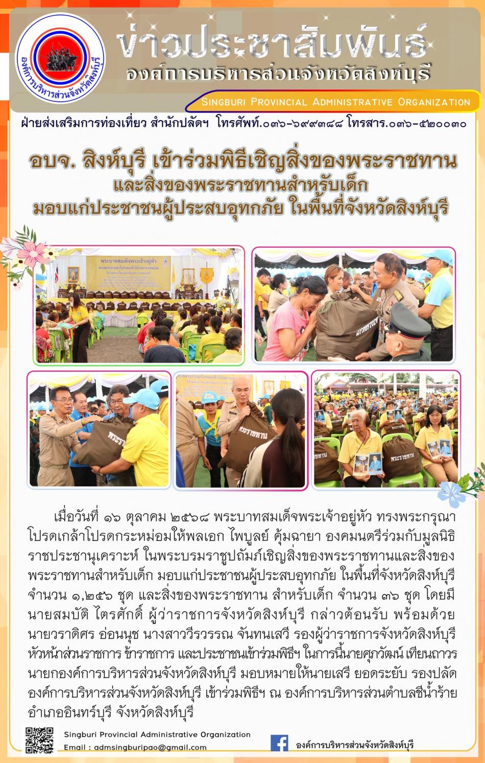 อบจ.สิงห์บุรี เข้าร่วมพิธีเชิญสิ่งของพระราธทานและส่งของพระราชทานสำหรับเด็กมอบแก่ประชาชนยีประสบอุทกภัย ในพื้นที่จังหวัดสิงห์บุรี [16 ตุลาคม 2568]