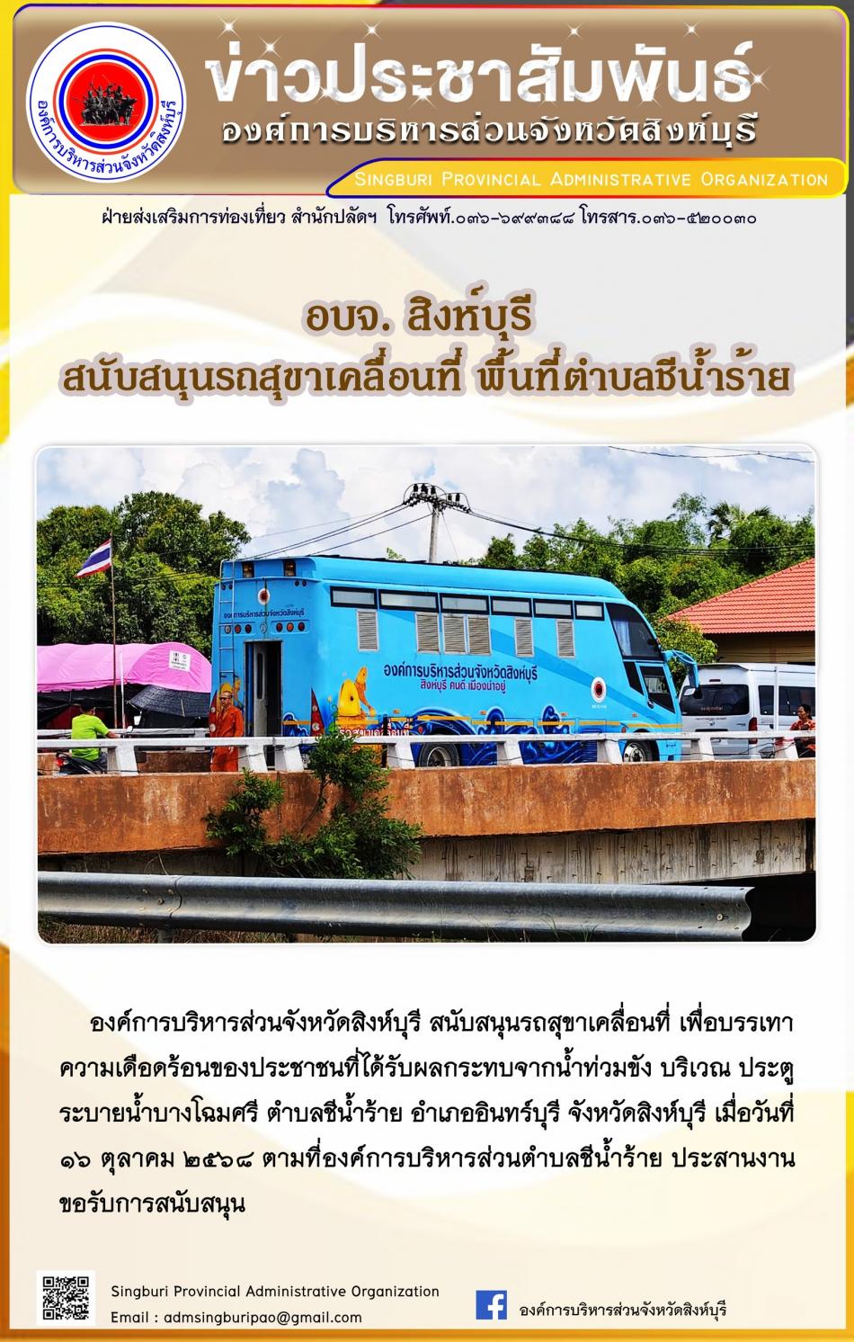 อบจ.สิงห์บุรี สนับธนุนรถสุขาเคลื่อนที่ พื้นที่ตำบลชีน้ำร้าย [16 ตุลาคม 2568]