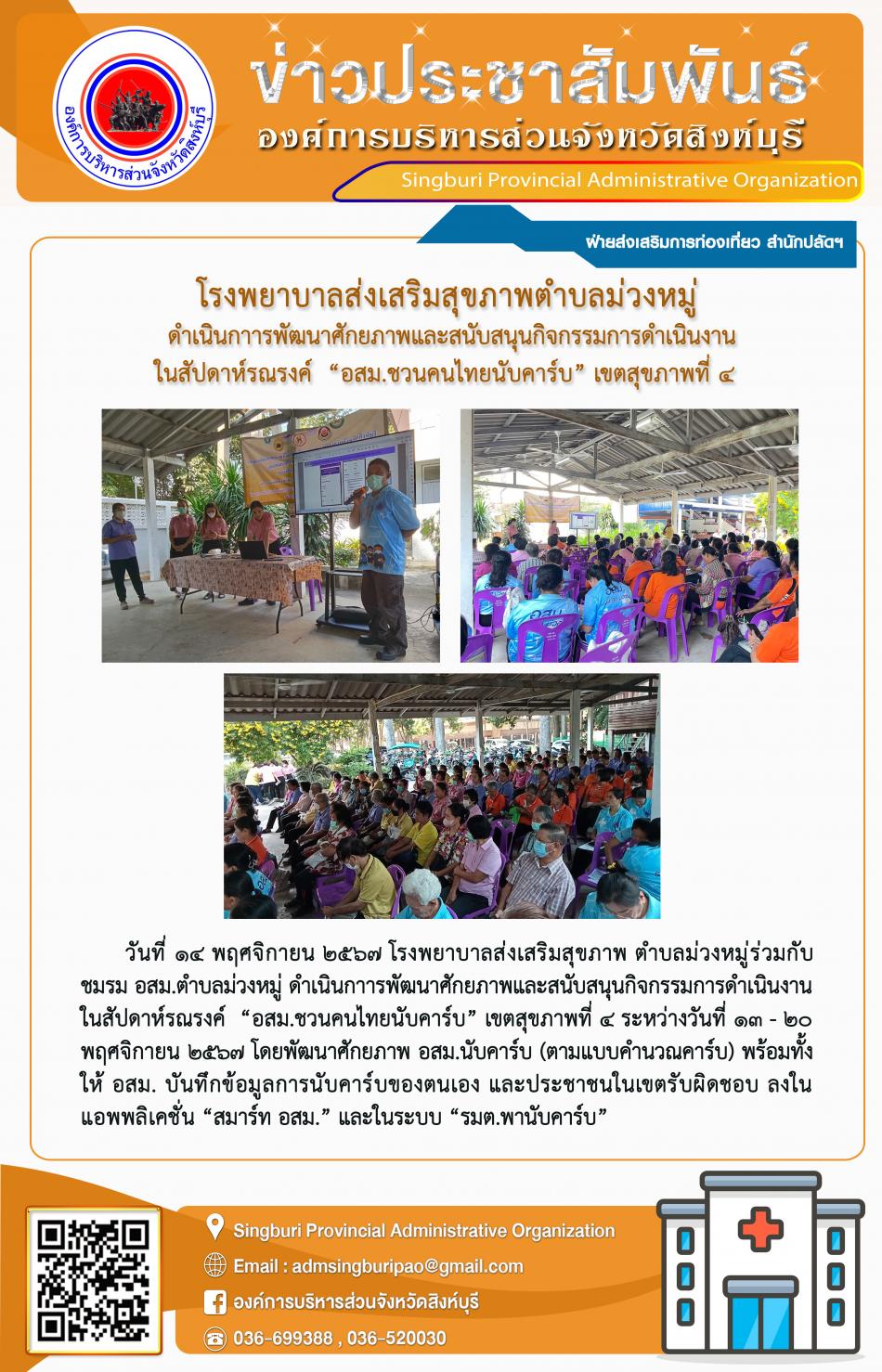 อบจ.สิงห์บุรี ลงพื้นที่สุ่มสำรวจ การดำเนินโครงการสร้างสุขภาวะ ในพื้นที่จังหวัดสิงห์บุรี [14 พฤศจิกายน 2567]