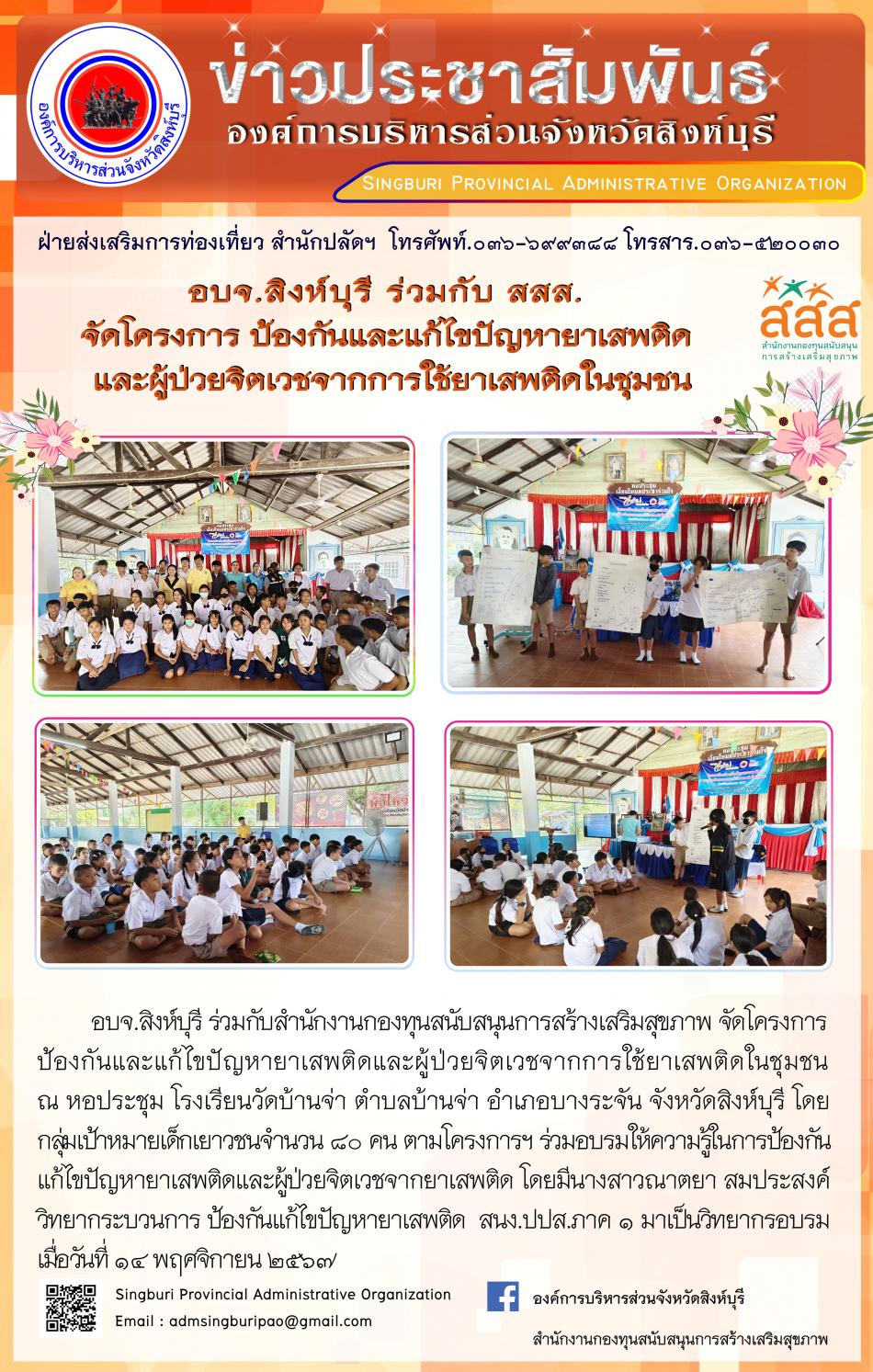 อบจ.สิงห์บุรี ร่วมกับ สสส.จัดโครงการป้องกันและแก้ไขปัญหายาเสพติด และผูป่วยจิตเวชจากการใช้ยาเสพติดในชุมชน [14 พฤศจิกายน 2567]