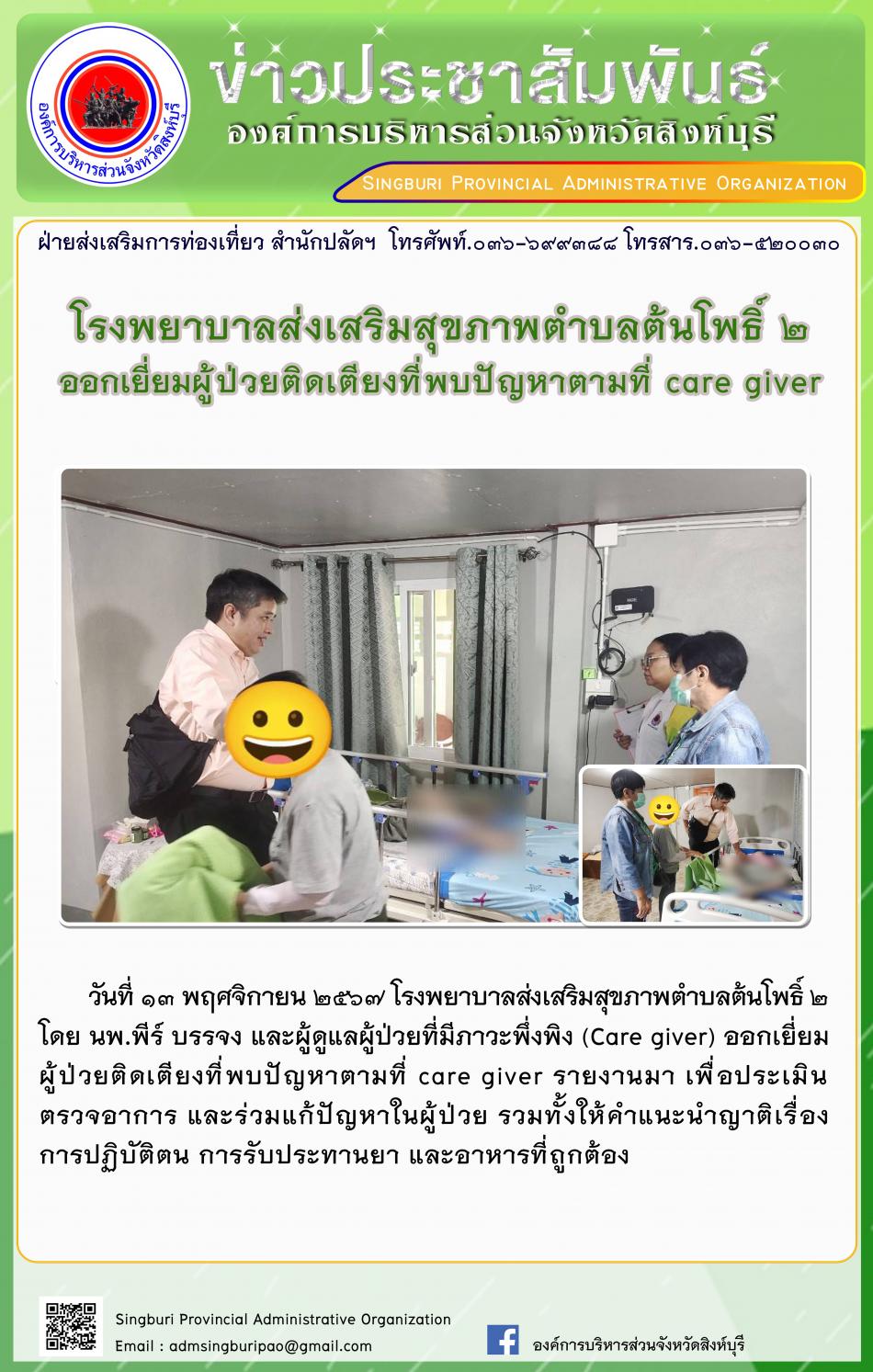 โรงพยาบาลส่งเสริมสุขภาพตำบลต้นโพธิ์ 2 ออกเยี่ยมผู้ป่วยติดเตียงที่พบปัญหาตามที่ Care Giver [13 พฤศจิกายน 2567]