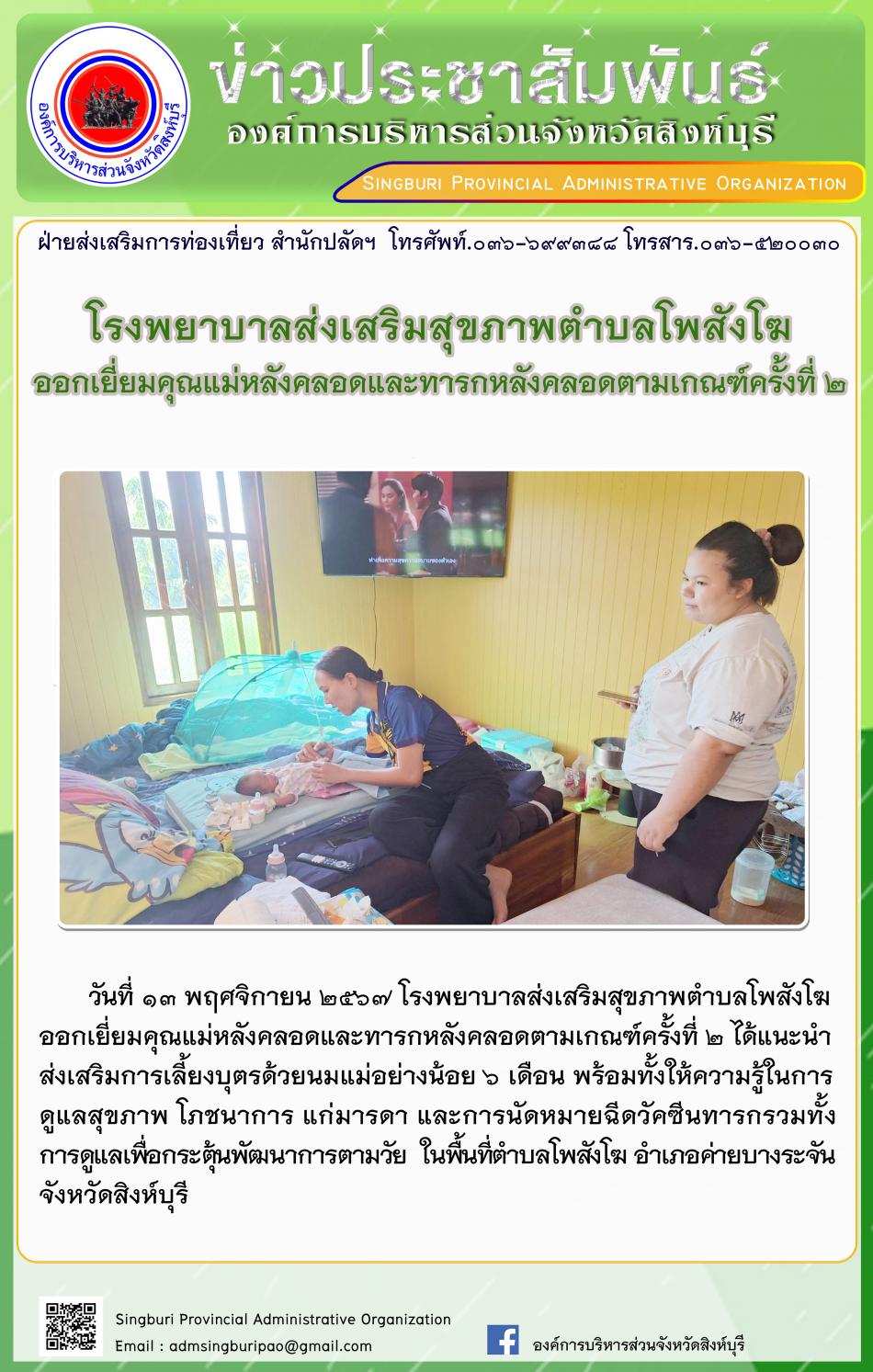 โรงพยาบาลส่งเสริมสุขภาพตำบลโพสังโฆ ออกเยี่ยมคุณแม่หลังคลอดและทารกหลังคลอดตามเกณฑ์ครั้งที่ 2 [13 พฤศจิกายน 2567]