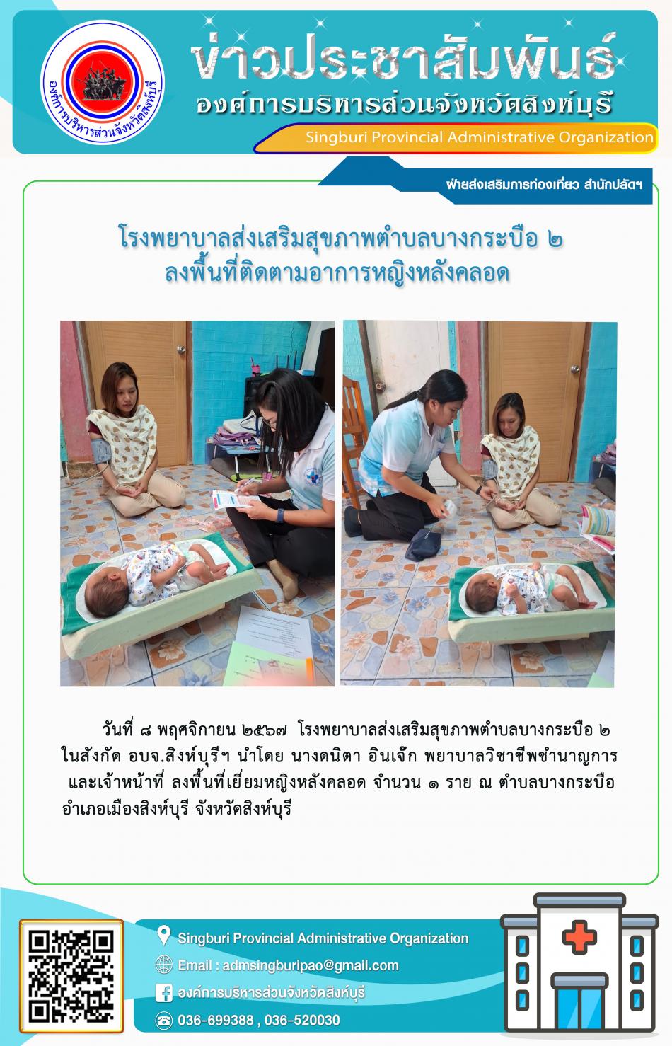 โรงพยาบาลส่งเสริมสุขภาพตำบลบางกระบือ2 ลงพื้นที่ติดตามอาการหญิงหลังคลอด [8 พฤศจิกายน 2567]
