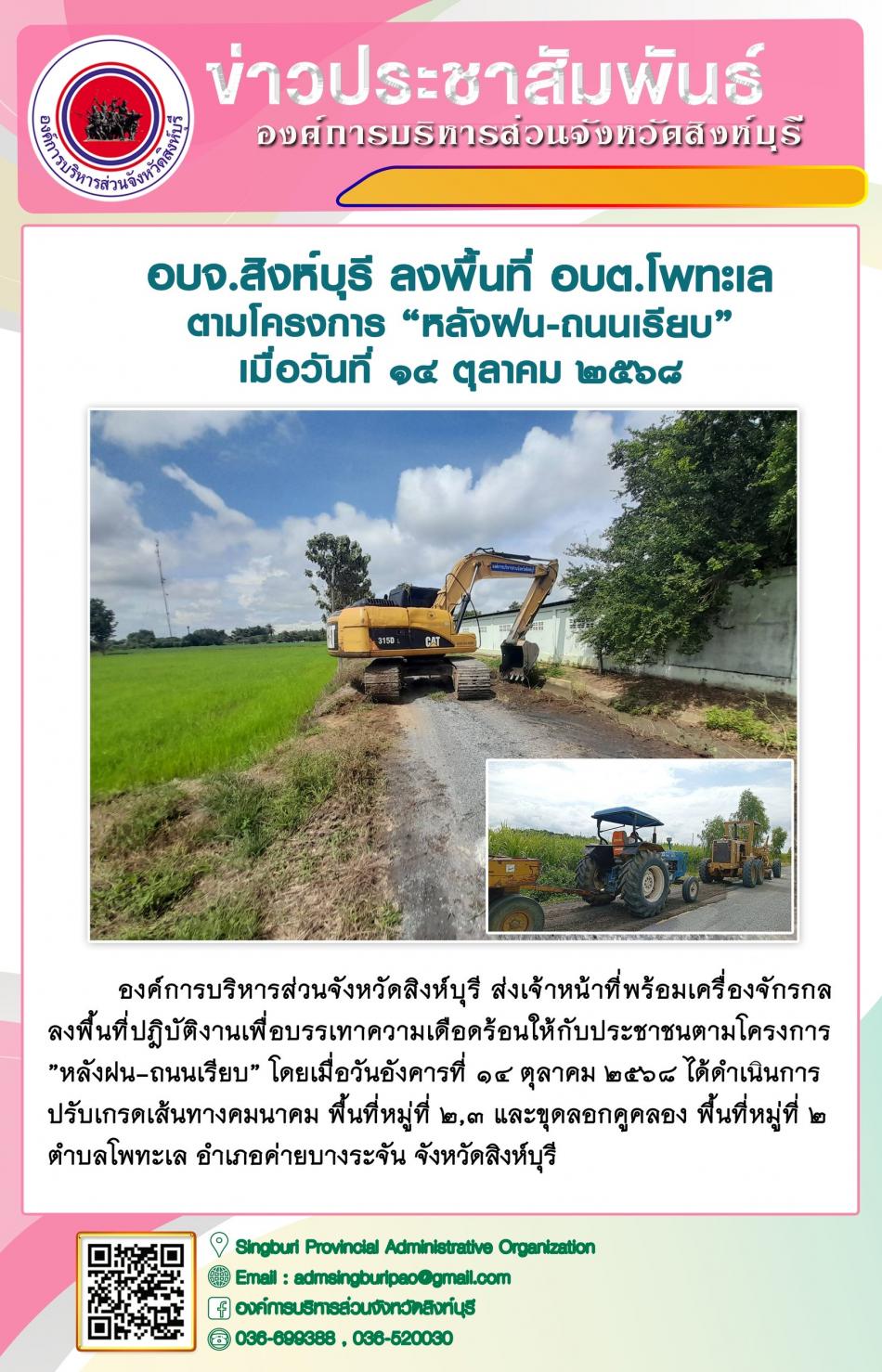 อบจ.สิงห์บุรี ลงพื้นที่ อบต.โพทะเล ตามโครงการ “ หลัง ฝน- ถนนเรียบ” [14 ตุลาคม 2568]