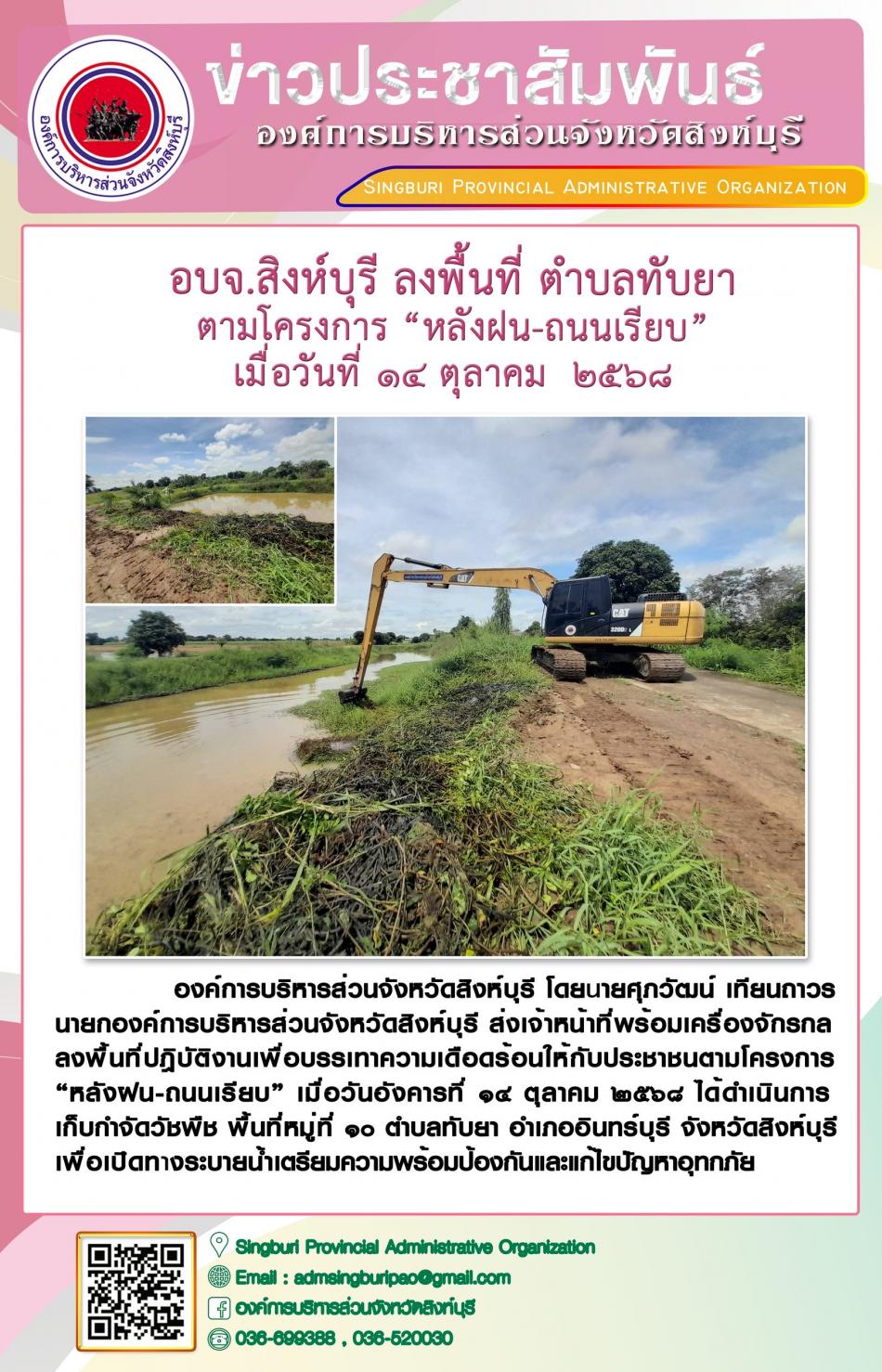 อบจ.สิงห์บุรี ลงพื้นที่ ตำบลทับยา ตามโครงการ “ หลัง ฝน- ถนนเรียบ” [14 ตุลาคม 2568]