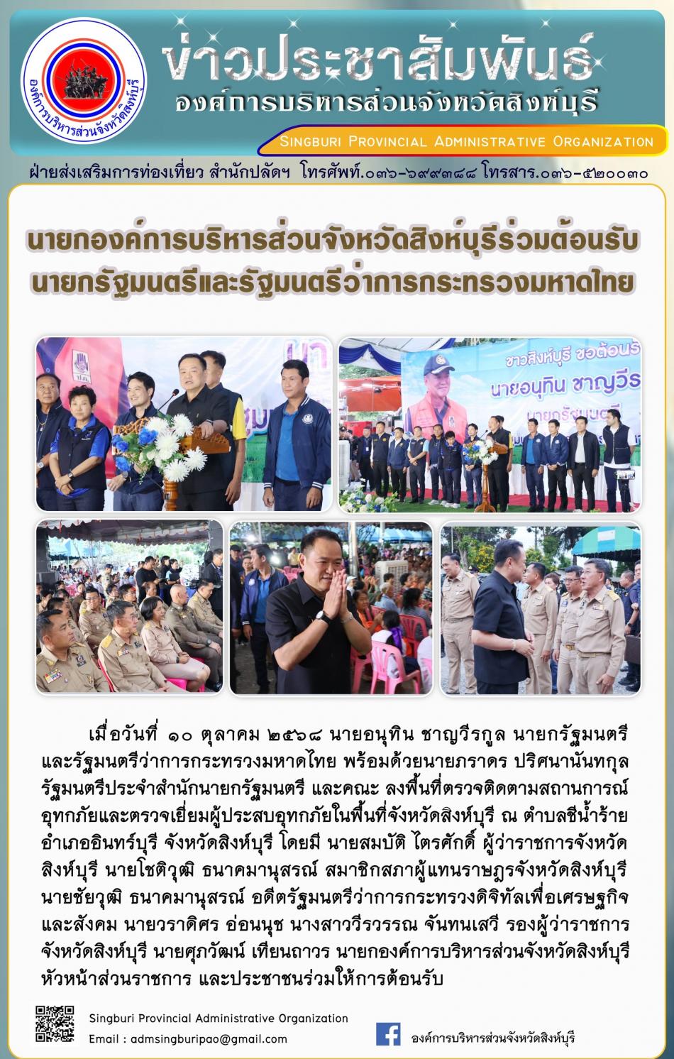 นายกองค์การบริหารส่วนจังหวัดสิงห์บุรีร่วมต้อนรับนายกรัฐมนตรีและรัฐมนตรีว่าการกระทรวงมหาดไทย [10 ตุลาคม 2568]