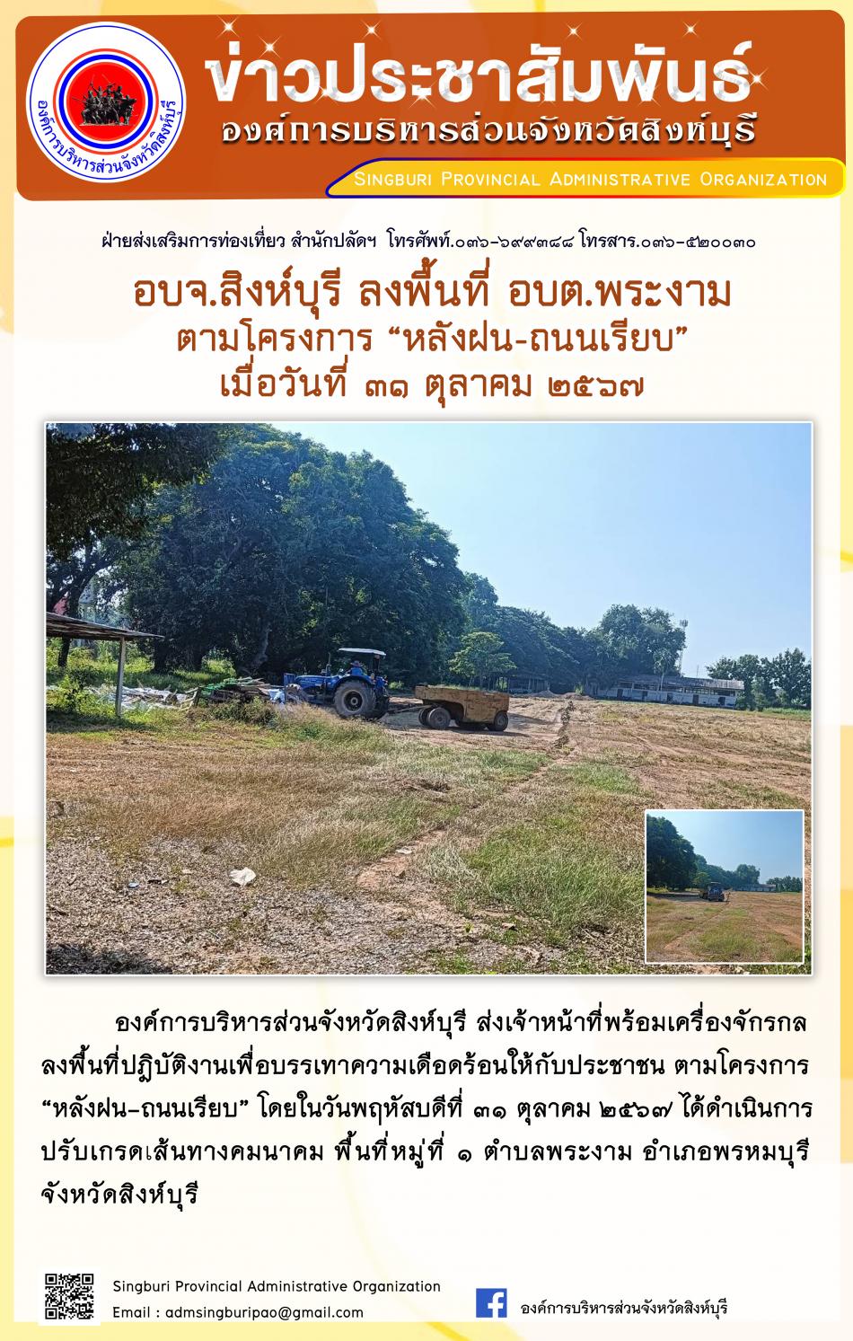 อบจ.สิงห์บุรี ลงพื้นที่ อบต.พระงาม ตามโครงการ "หลังฝน - ถนนเรียบ" [31 ตุลาคม 2567]
