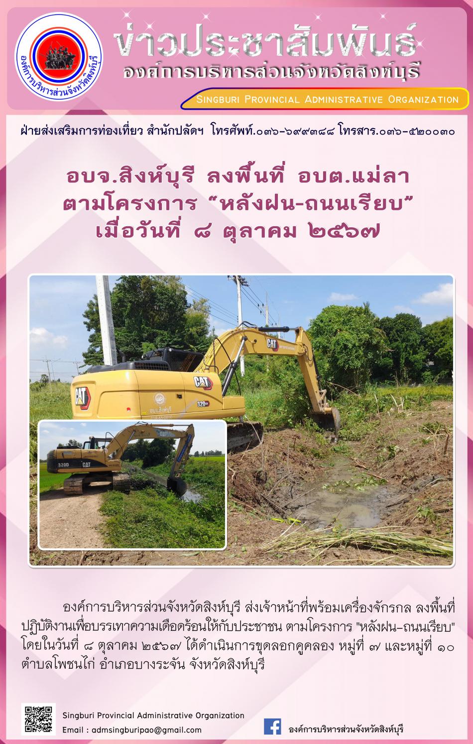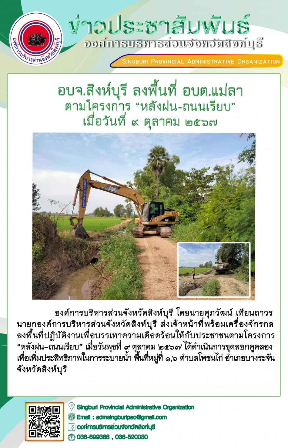 อบจ.สิงห์บุรี ลงพื้นที่ อบต.แม่ลาตามโครงการ "หลังฝน - ถนนเรียบ" [9 ตุลาคม 2567]