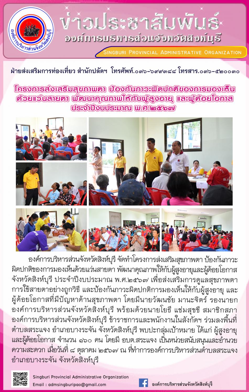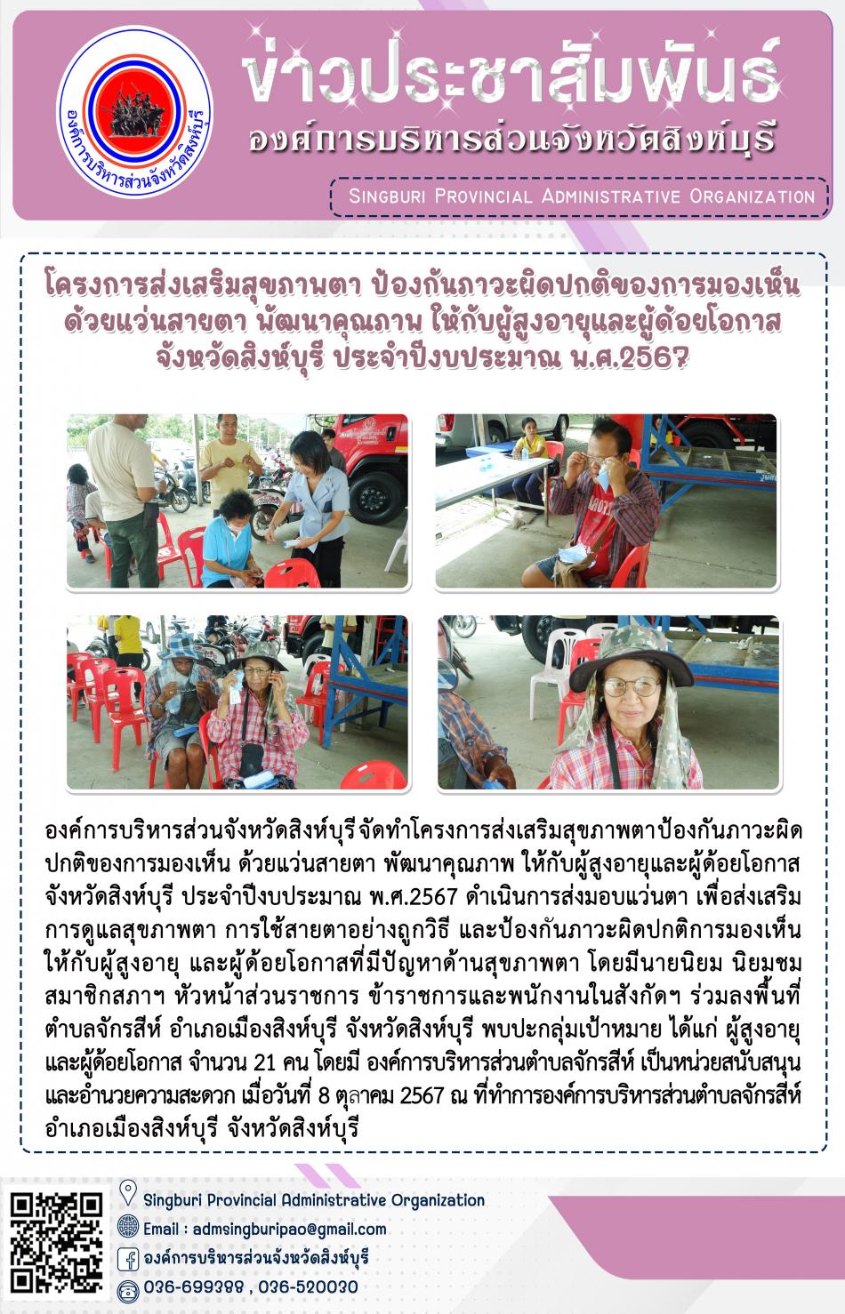 โครงการส่งเสริมสุขภาพตา ป้องกันภาวะผิดปกติของการมองเห็นด้วยแว่นตา พัฒนาคุณภาพให้กับผู้สูงอายุ และผู้ด้อยโอกาส ประจำปีงบประมาณ พ.ศ.2567 [8 ตุลาคม 2567]