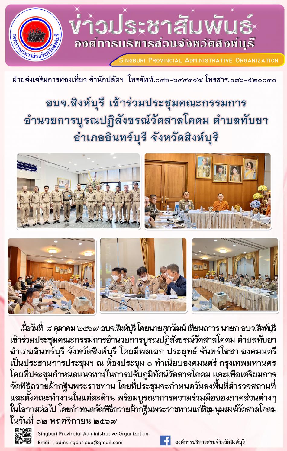 อบจ.สิงห์บุรี เข้าร่วมประชุมคณะกรรมการอำนวยการบูรณปฏิสังขรณ์วัดสาลโคดม ตำบลทับยา อำเภออินทร์บุรี จังหวัดสิงห์บุรี [8 ตุลาคม 2567]