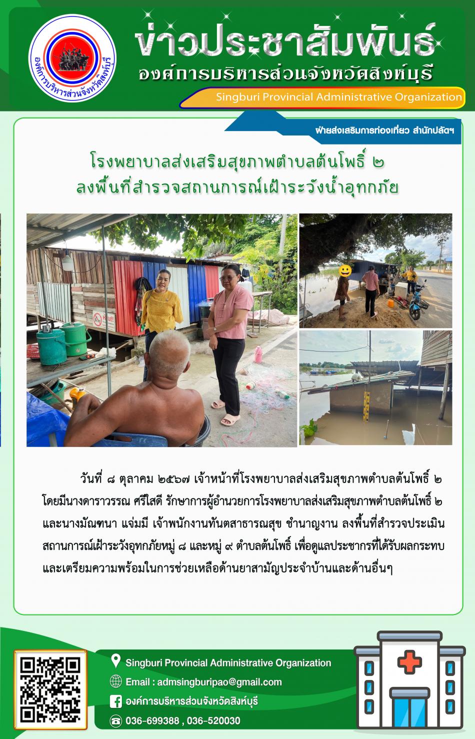 โรงพยาบาลส่งเสริมสุขภาพตำบลต้นโพธิ์ 2 ลงพื้นที่สำรวจสถานณ์เฝ้าระวังน้ำอุทกภัย [8 ตุลาคม 2567]