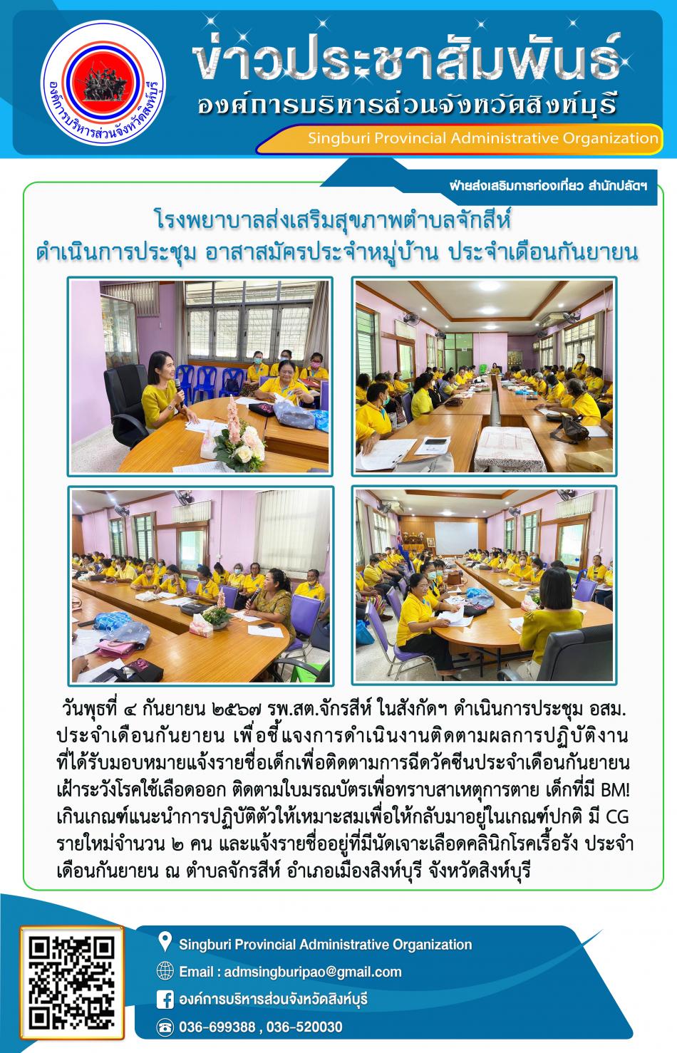 โรงพยาบาลส่งเสริมสุขภาพตำบลจักรสีห์ ดำเนินการประชุม อาสาสมัครประจำหมู่บ้าน ประจำเดือนกันยายน [4 กันยายน 2567]