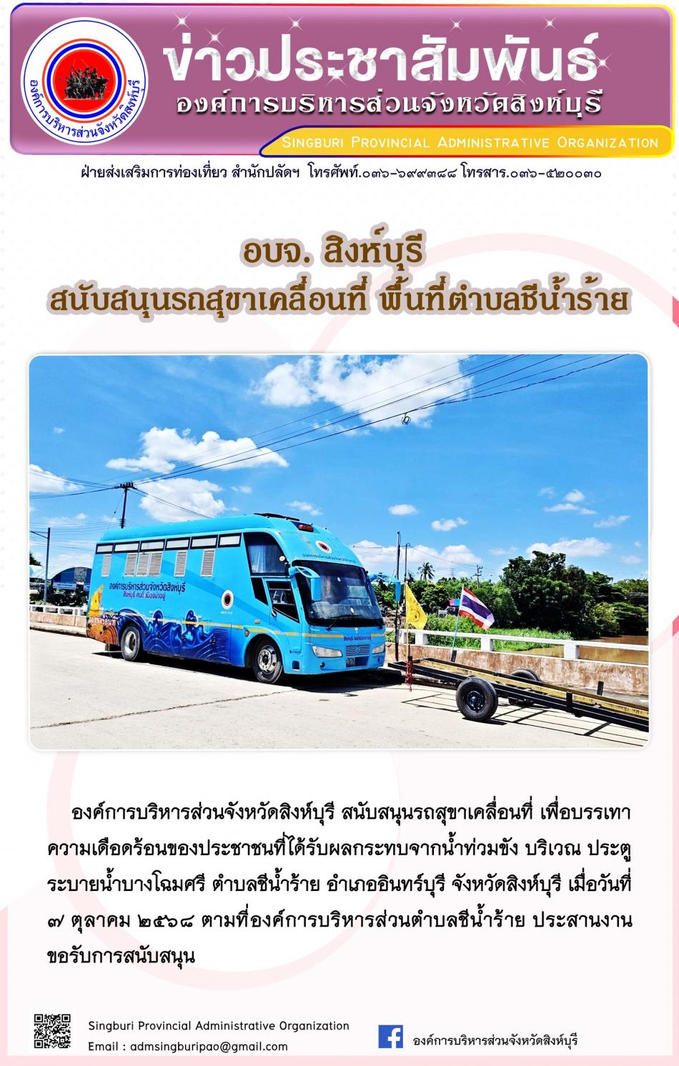 อบจ.สิงห์บุรี สนับสนุนรถสุขาเคลื่อนที่ พื้นที่ตำบลชีน้ำร้าย [7 ตุลาคม 2568]