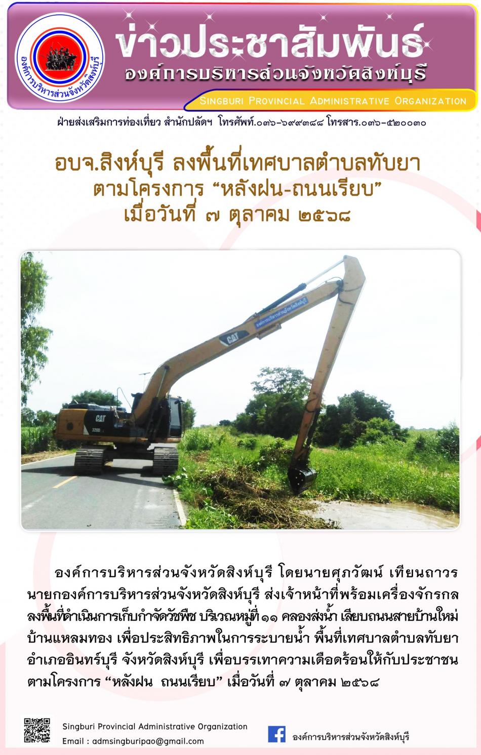 อบจ.สิงห์บุรี ลงพื้นที่ ตำบลทับยา ตามโครงการ “ หลัง ฝน- ถนนเรียบ” [7 ตุลาคม 2568]