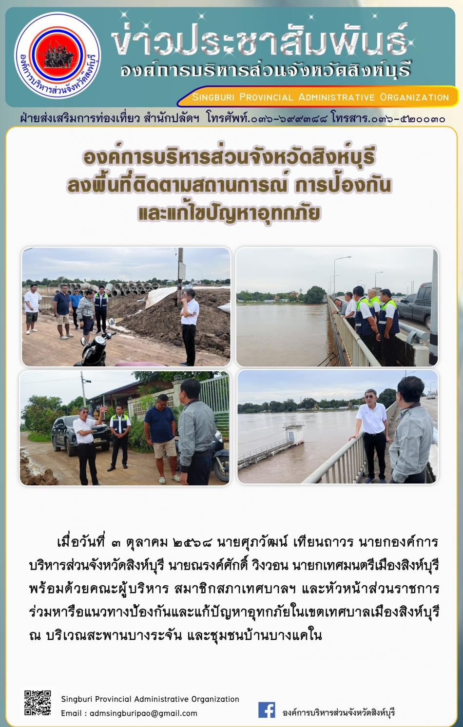 องค์การบริหารส่วนจังหวัดสิงห์บุรี ลงพื้นที่ติดตามสถานการณ์ การป้องกันและแก้ไขปัญหาอุทกภัย [3 ตุลาคม 2568]