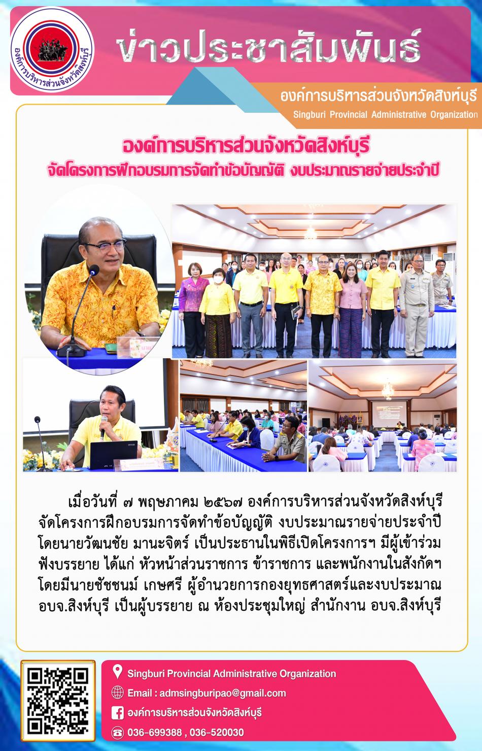 องค์การบริหารส่วนจังหวัดสิงห์บุรี จัดโครงการฝึกอบรมการจัดทำข้อบัญญัติ งบประมาณรายจ่ายประจำปี [7 พฤษภาคม 2567]