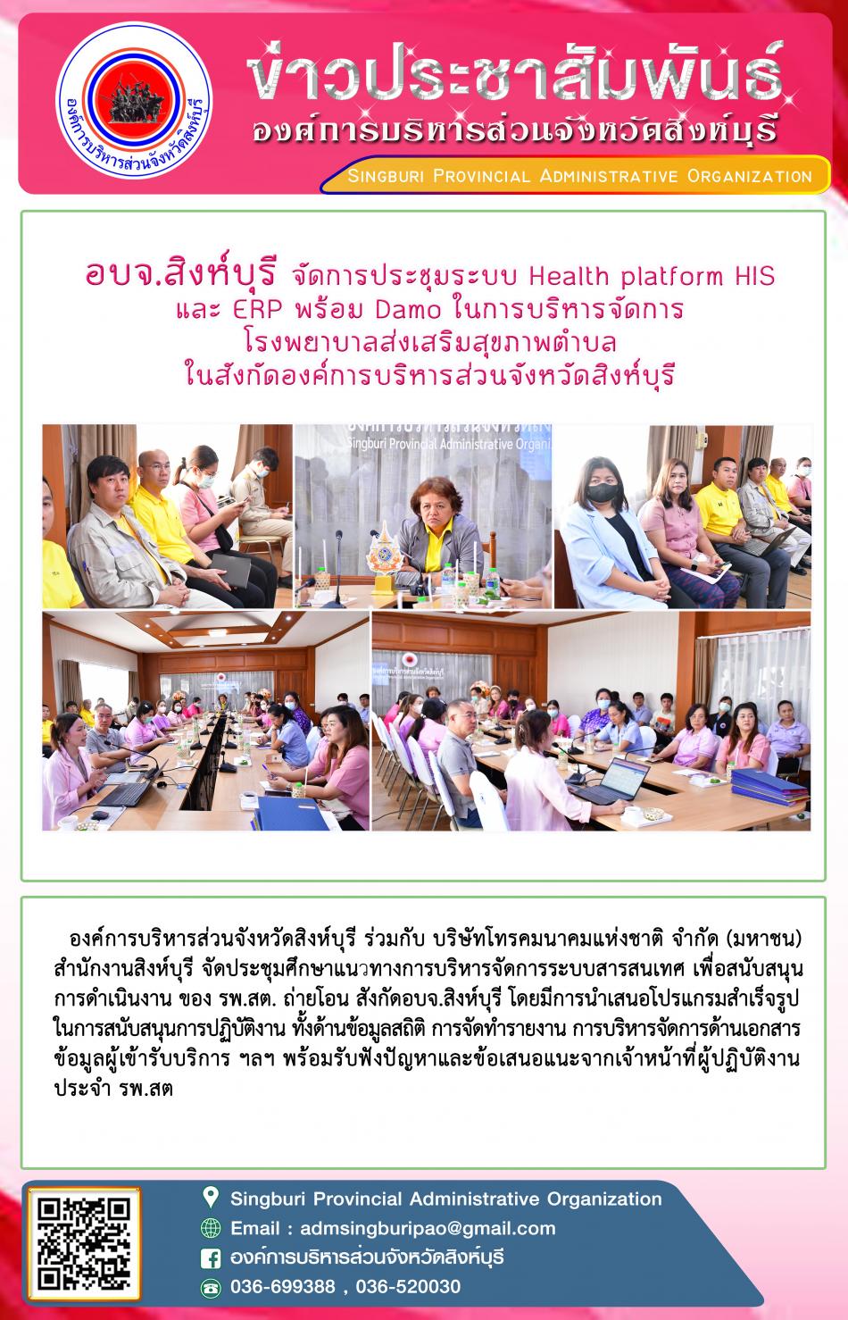 อบจ.สิงห์บุรี จัดการประชุมระบบ Health Platform HIS และ ERP พร้อม Damo ในการบริหารจัดการ โรงพยาบาลส่งเสริมสุขภาพตำบลในสังกัดองค์การบริหารส่วนจังหวัดสิงห์บุรี [7 พฤษภาคม 2567]
