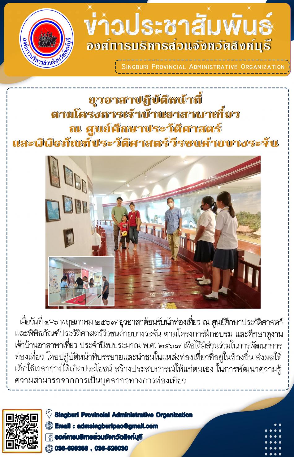 ยุวอาสา ลงพื้นที่ปฏิบัติหน้าที่ ตามโครงการเจ้าบ้านอาสาพาเที่ยว ณ ศูนย์ศึกษาประวัติศาสตร์และพิพิธภัณฑ์ประวัติศาสตร์วีรชนค่ายบางระจัน [5 พฤษภาคม 2567]