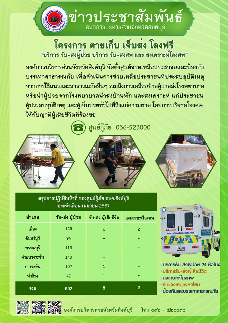 โครงการ ตายเก็บ เจ็บส่ง โลงฟรี "บริการ รับ - ส่งผู้ป่วย บริการ รับ - ส่งศพ และสงเคราะห์โลงศพ" [7 พฤษภาคม 2567]