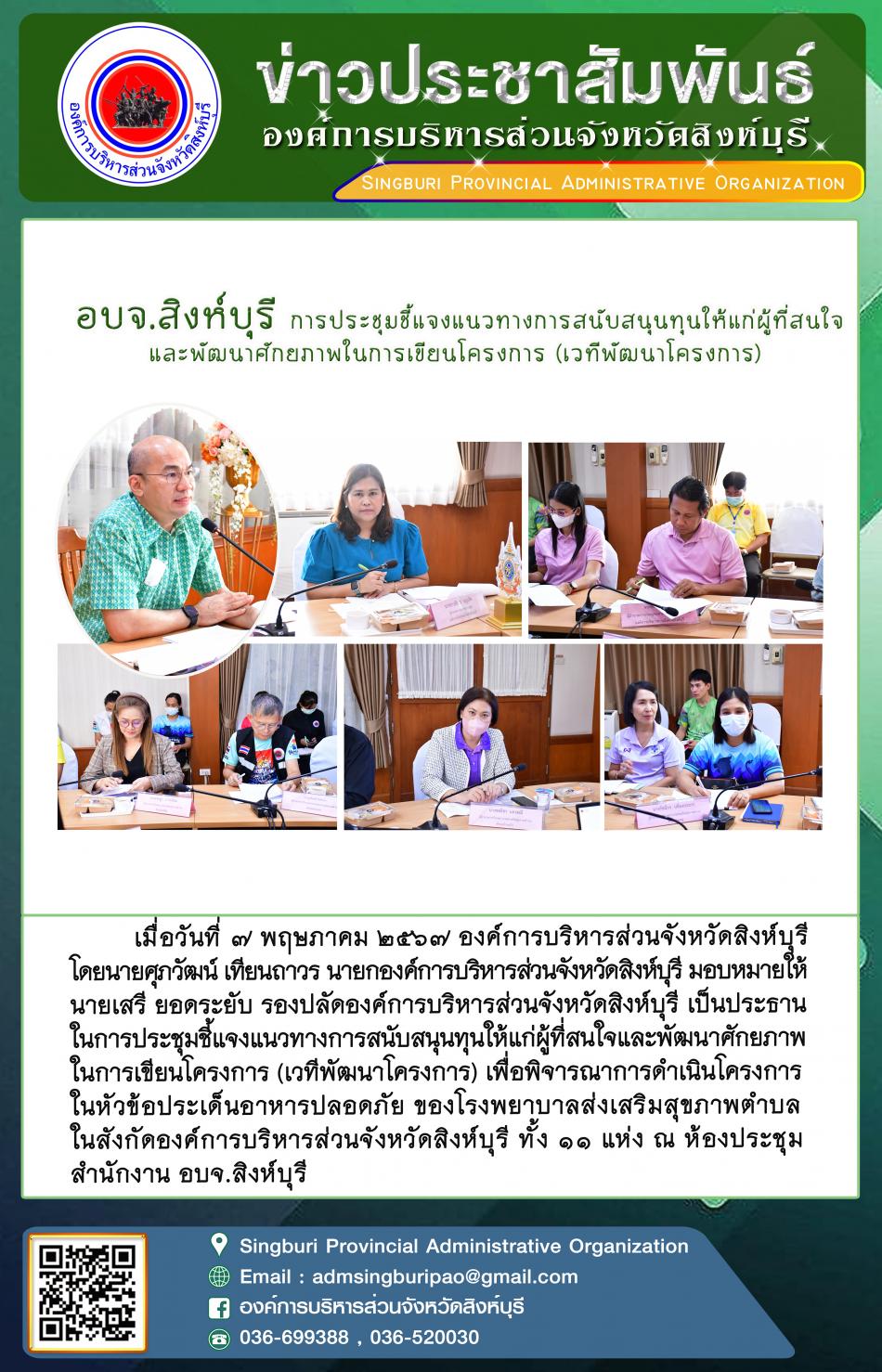 อบจ.สิงห์บุรี การประชุมชี้แจงแนวทางการสนับสนุนทุนให้แก่ผู้ที่สนใจและพัฒนาศักยภาพในการเขียนโครงการ(เวทีพัฒนาโครงการ) [7 พฤษภาคม 2567]