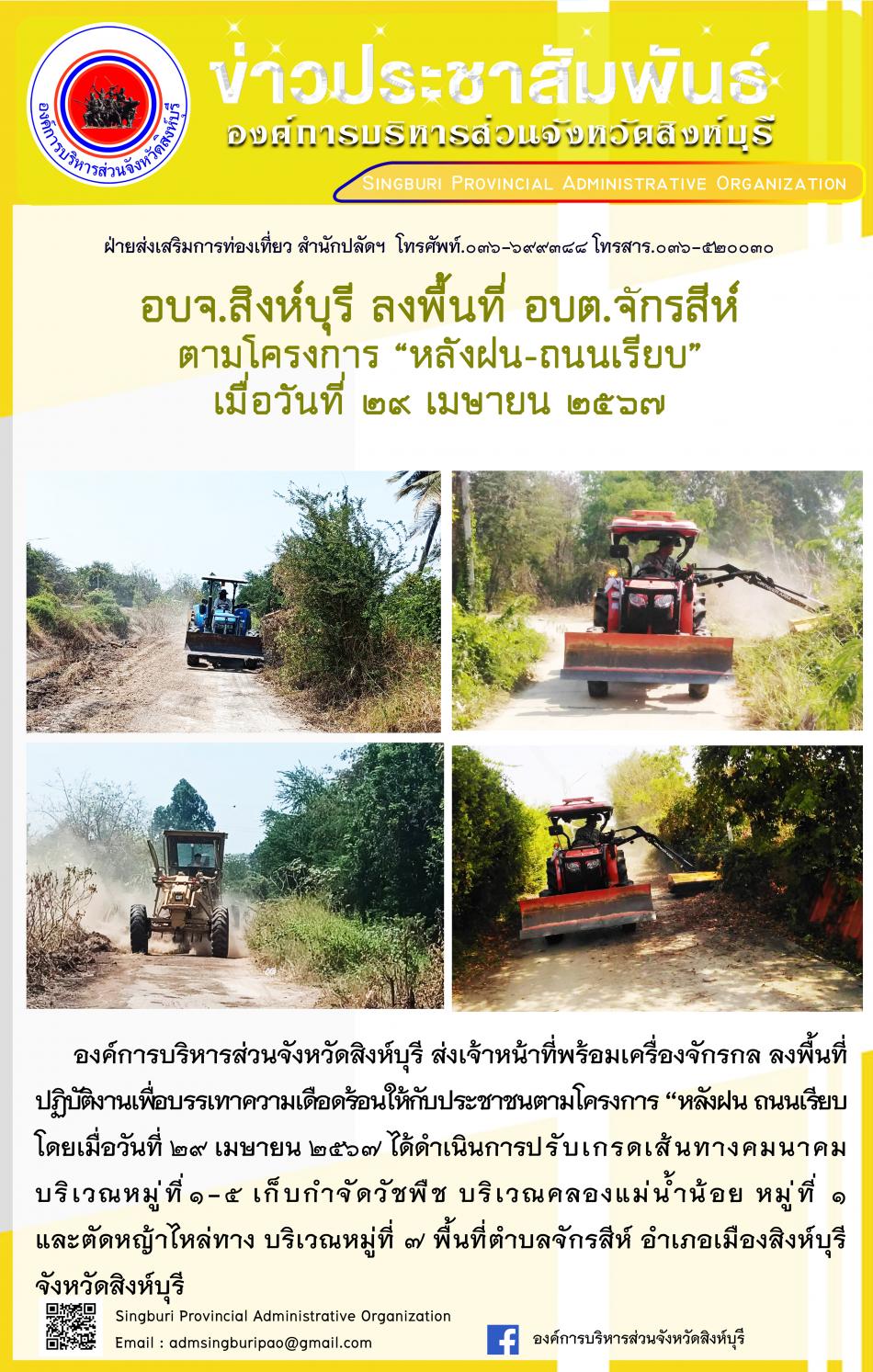 อบจ.สิงห์บุรี ลงพื้นที่ อบต.จักรสีห์ ตามโครงการ "หลังฝน - ถนนเรียบ" [29 เมษายน 2567]