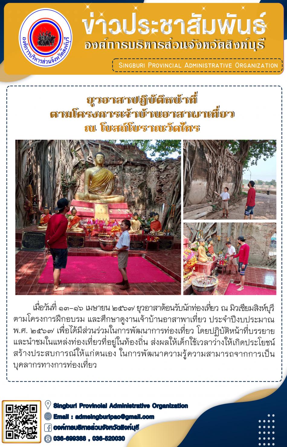 ยุวอาสา ลงพื้นที่ปฏิบัติหน้าที่ ตามดครงการเจ้าบ้านอาสาพาเที่ยว ณ โบสถ์โบราณวัดไทร [16 เมษายน 2567]