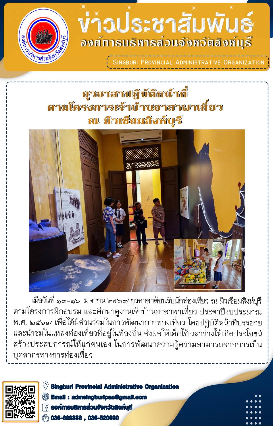 ยุวอาสา ลงพื้นที่ปฏิบัติหน้าที่ ตามดครงการเจ้าบ้านอาสาพาเที่ยว ณ มิวเซียมสิงห์บุรี [16 เมษายน 2567]