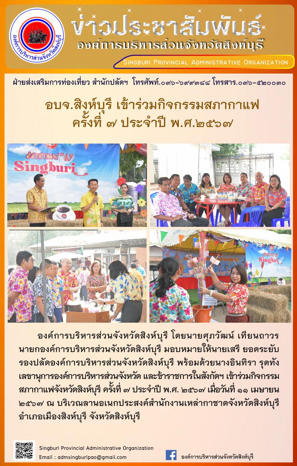 อบจ.สิงห์บุรี เข้าร่วมกิจกรรมสภากาแฟ ครั้งทีท 7 ประจำปี พ.ศ.2567 [11 เมษายน 2567]