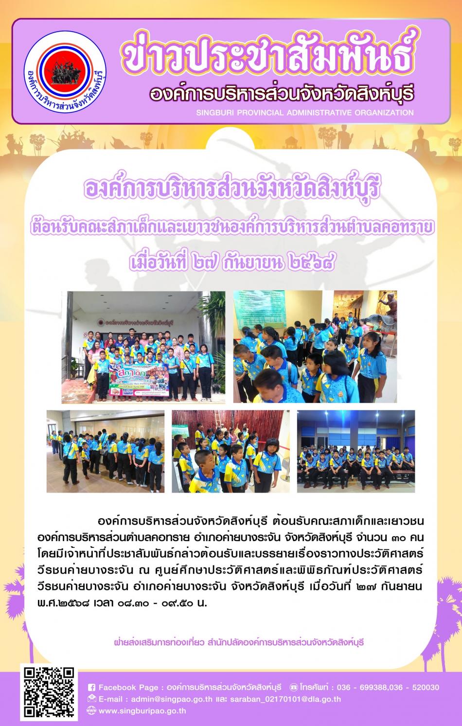 องค์การบริหารส่วนจังหวัดสิงห์บุรี ต้อนรับคณะสภาเด็กและเยาวชนองค์การบริหารส่วนตำบลคอทราย [27 กันยายน 2568]