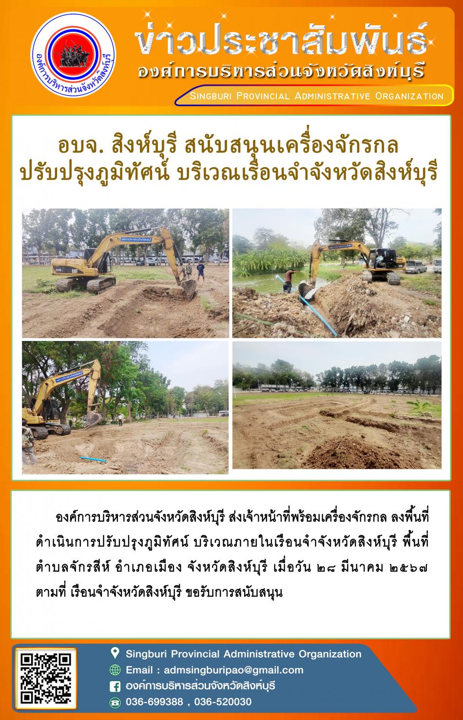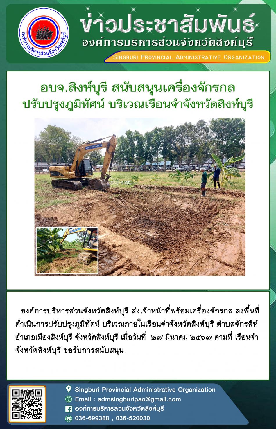 อบจ.สิงห์บุรี สนับสนุนเครื่องจักรกล ปรับปรุงภูมิทัศน์ บริเวณเรือนจำจังหวัดสิงห์บุรี [28 มีนาคม 2567]