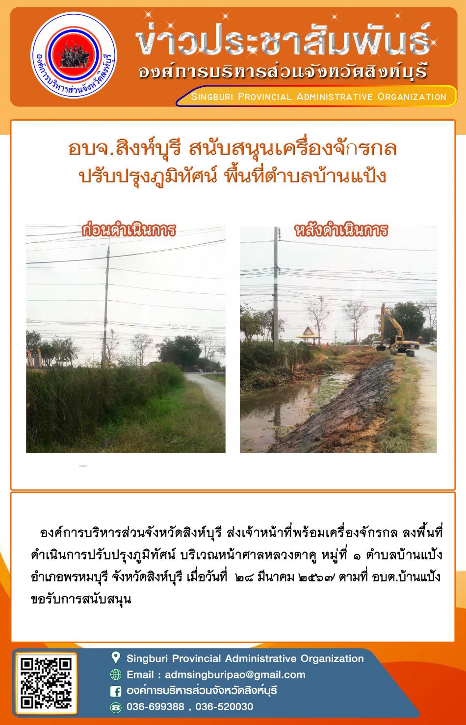 อบจ.สิงห์บุรี ส่งเจ้าหน้าที่พร้อมเครื่องจักรกล ปรับปรุงภูมิทัศน์ พื้นที่ตำบลบ้านแป้ง [28 มีนาคม 2567]